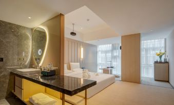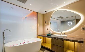 The hotel has all-round wireless coverage and uses Xiaodu voice intelligent system to bring you infinite convenience. All guest rooms use 110-inch 4K high-definition projection to create a new cinema-level experience, allowing customers to experience the relaxation of being in nature; the oversized bathtub allows you to enjoy a moment of complete relaxation during a tiring journey; guest room mattresses and pillows are made of With the internationally patented Dream Lily mattress and zero-pressure pillow, you can experience healthy sleep and zero-pressure life. The hotel provides Chinese and Western breakfast, self-service laundry, self-service gym, free parking, tourist attraction guidance and other services; the hotel provides deposit-free check-in, check-out without inspection, and 24-hour butler service, allowing you to feel at home during your journey.