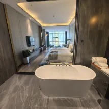 The hotel boasts a prime location right on Central Avenue, just steps from the Flood Control Monument and near the Songhua River, making it incredibly convenient for exploring. Built to five-star standards, the rooms are well-equipped with modern amenities such as electric curtains and Xiaomi air purifiers. The breakfast is excellent, featuring delicious Northeastern specialties, and is served until 11 AM—the latest I've experienced at any five-star hotel. The staff are exceptionally warm, welcoming, polite, and professional. I highly recommend this hotel!