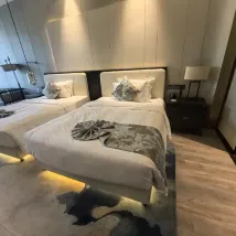 Arrived at the hotel quite early, and my reserved room wasn't ready yet. The front desk manager proactively upgraded me to a river-view room, which offered beautiful views of the Songhua River directly from the room. The room was incredibly spacious, with each bed measuring 1.5 meters. It was luxurious and spotlessly clean, and all the amenities were new and abundant. They even offered complimentary goodnight milk, Americano coffee, and a Qipao fashion show. Absolutely fantastic value for money! The breakfast spread was incredibly extensive. The restaurant itself was charming and elegant, providing a very pleasant dining environment. Parking was also very convenient, and the security personnel were diligent and vigilant, ensuring we felt extremely safe and secure.