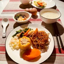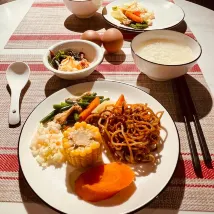 Breakfast is yummy (non halal, for our Muslim friends out there - but they have toasts, steamed mantou, steamed corn pumpkin, cereals, milk, juice, and even veggie fried rice with veggie side dishes - pls eat at your own discretion).