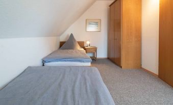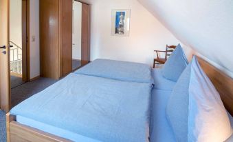 The holiday house "An der Kurpromenade 9a" (semi-detached house) stands on a 200 sqm plot, with a small lawn, terrace with awning and garden furniture, barbecue and storage for bicycles etc. The property is in a dead end and so ideal for children. The house has a unique location, as it is with the terrace to the open field (south side). Upstairs are two bedrooms with 2 beds each (double bed and 2 separate beds).