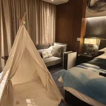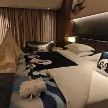 The room was spacious, and the decor was decent and well-appointed with all the necessary facilities. The service was excellent, with a thoughtful personal butler who even brought us fruit. The room had a great view. We happened to be staying here during Wang Leehom's concert, so there were a lot of cars outside. Our family came to see Zhou Shen, and the hotel even provided fan support stickers, which was a pleasant surprise and my child loved it. The room included a generous single dinner, and I highly recommend the dessert – it was delicious and sweet. My child said they want to stay at the InterContinental again during the holidays!