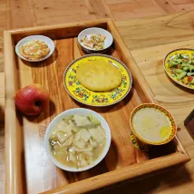 We planned to go to Dagu Glacier the next day and drove to check in at night. The road to the destination was all dark S-curves. When the village of Cashmere Had suddenly appeared, there was a light in the darkness. It was so warm and amazing. At this time, the front desk called just in time. Warm and kind, we asked about the itinerary and booked the tickets for Dagu. The housekeeper took us to the house, a 3-story building, all solid wood, very distinctive, floor heating to dispel the cold, warm and touching. The breakfast is also very distinctive, highly recommended.