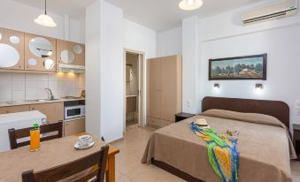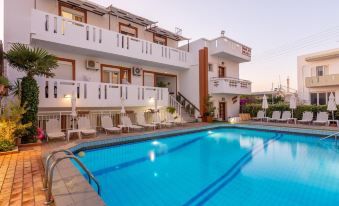 Prima prijs/kwaliteit!. Typisch Grieks maar toch super netjes. Zwembad, bar héérlijk rustig! Dichtbij het strand en tavernes. Wij hadden een 4 persoonsappartement op de eerste verdieping met zicht op het zwembad.