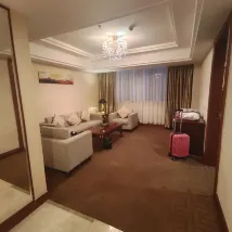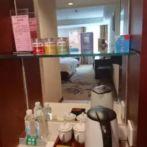 The location is super good, opposite Far East International Station, where you can eat all kinds of food. The room is spacious, the window faces Lingfeng Mountain, the bathroom has a large and hot water supply, the bath towel is super thick and comfortable (I want to buy it for my own use), and there is a laundry room (washing machine + dryer). The downside is that the decoration is old, the lighting is not bright enough, and the room is dim. In addition, the water massage on the first floor is average.