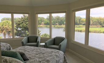 Unwind and relax at BELLA VISTA! This professionally decorated custom home is in a premiere location of Palmetto Dunes Resort. This home boasts breathtaking lagoon and golf views along one of the widest parts of the 11-mile lagoon system and 13th fairway of the Robert Trent Jones golf course. Bella Vista offers the privacy you long for on vacation, yet still only a short walk or bike ride to the beach and amenities of Palmetto Dunes.