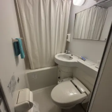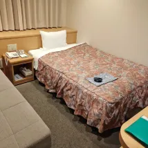 The hotel is easily accessible by foot and surprisingly a big hotel with escalators (easy for travellers with luggage) and a big hotel lobby (considering that it is a business hotel in Japan). Stayed as a family of 3 (with a child). The room was fine with 2 beds but no space for big luggage. We actually paid extra at the Front Desk for my child to stay together but was disappointed that it does not come with an extra bathroom towel nor room slippers. I asked for 1 more pillow and was rejected too. But one of the male staff at the Front Desk was extremely helpful which was a bonus. He gave a suggestion in passing me 2 blankets which I can stack them and use as a pillow. We liked the view from our room too. We are able to see the the busy train tracks with Shinkansen and cargo trains. The stay comes with breakfast and dinner too. Overall, it was a great stay. Thank you.