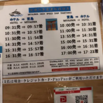 One way ticket from hotel to Miyajima is 2400 yen and return is 4500 yen.