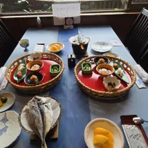 This ryokan offers great value for money. The food is delicious, and the open-air bath and large public bath are both excellent. However, the foreign staff were inexperienced and awkward in explaining dinner and ordering (serving chawanmushi and soup last, lighting the grill first, not bringing rice unless requested). While Amagase Station is a bit difficult to find, if you call the station staff, they'll arrange shuttle service. Overall, this ryokan offers great value for money. The food is truly delicious, and the open-air bath water is excellent!