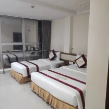 I booked two single beds, but the hotel staff made a mistake, so we both slept in one bed. It was noisy at night because it was a single bed, and small flies came in. I booked with breakfast included, but they don't currently offer breakfast service. However, the hotel was in a good location, with a famous banh mi restaurant next door and a shopping mall right in front of the hotel, so it was very convenient. It was easy to call a taxi on the street in front of the hotel. The photo shows the street in front of the hotel.