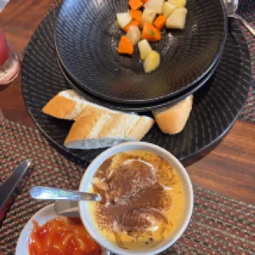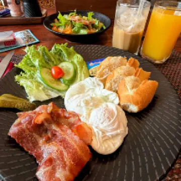 First of all, the breakfast was a full course meal... ㅠ Coconut coffee, orange juice... banana crepes... and even traditional food... ㅠ I loved it so much.
