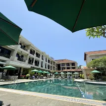 Wow, fantastic! This hotel is a proper resort with a beautiful Southeast Asian vibe. It's super close to the Ancient Town, and there's a shuttle service nearby that takes you to Da Nang. Breakfast was plentiful, and our room had a lovely pool view. The pool was bustling with Western and Korean guests splashing around.