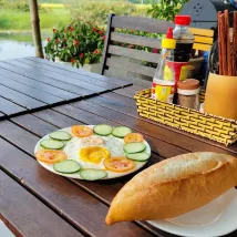 I booked this B&B for my first time in Hoi An. The big bed room with river view is clean and tidy. The price is fair and breakfast is included. The boss and the landlady are friendly and can communicate with each other through a translator. You can reach Hoi An in five minutes by renting a bicycle, and you can ride to the hotel five kilometers away. It is much easier to return to Hoi An City by coconut basket boat and it is worth recommending.