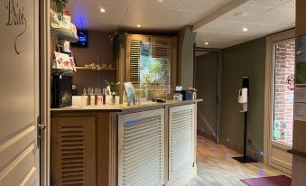 Das Hotel ist ca. 2 km außerhalb von Honfleur in ruhiger Lage mit einem hübschen Garten. Die Atmosphäre im Hotel war sehr angenehm, die Einrichtung modern und geschmackvoll. Unser Zimmer war sehr gemütlich, mit Blick aufs Meer und den Hafen von Le Havre. Wir haben sehr gut geschlafen - es war sehr ruhig. Das Frühstück war sehr gut, es gab verschiedene Wurst-, Schinken- und Käsesorten, frisch geschnittenes Obst, Müsli, Säfte und Marmelade. Im Hotel gibt es auch einen kleinen Innenpool und eine Sauna. Recht angenehm um nach einem Ausflugstag etwas zu Schwimmen. Leider gibt es keinen direkten Zugang zum Meer, da zwischen Hotel und Strand eine Straße und andere Grundstücke sind, wo es dazwischen keinen Weg oder Durchgang gibt. Der öffentliche Strand ist nicht weit, etwa 700 m, aber da die Straße sehr schmal ist und ohne Gehsteig, oder Platz für Fußgänger, würde ich eher nicht zu Fuß gehen.