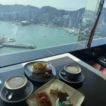 This is the most convenient hotel when traveling from mainland China to Hong Kong. You can easily walk to it from the high-speed rail station, so even on a rainy day, it's very convenient. The Elements shopping mall downstairs meets all dining and shopping needs and is great for browsing. We wanted to have afternoon tea; both the restaurant on the 103rd floor and the lobby lounge on the 102nd floor offer it. The restaurant always has afternoon tea sets available, but it finishes quite early, at 5:15 PM. The lobby lounge's afternoon tea requires a bit of advance booking; if you don't book, you can only order à la carte, and there aren't many options, nor is the presentation as exquisite as expected. The environment, however, is excellent, with expansive high-altitude views overlooking the islands and the sea, offering a unique perspective of Hong Kong. We stayed during the Mid-Autumn Festival and received mooncakes and lanterns, plus a late check-out, which we were very pleased with. My husband took the kids swimming and came back saying the staff were very attentive, helping to wash and spin-dry their swimsuits. The service was incredibly detailed. We will definitely stay here again.