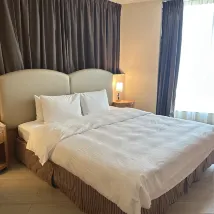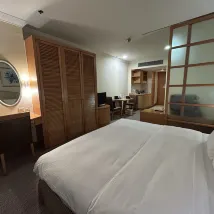 The room was incredibly spacious and even featured a small living area. The bathroom was also generously sized and came with a bathtub. The bedding was exceptionally comfortable and soft. In line with their eco-friendly approach, disposable toiletries are not provided, so guests should remember to bring their own. The front desk staff were notably polite and welcoming. The hotel's location is fantastic, with a shopping mall conveniently nearby and numerous dining options within easy reach. There's also a swimming pool accessible on the third floor. Additionally, the hotel offers a buffet restaurant. Definitely worth recommending.