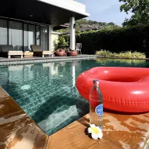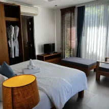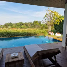 Good accommodation, a pool villa style, large and wide swimming pool, quiet, peaceful, very good service staff. Breakfast is served at the villa with many options to choose from. There is a welcome drink and snack and good night drink as well.
