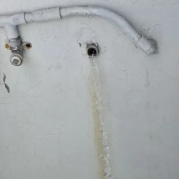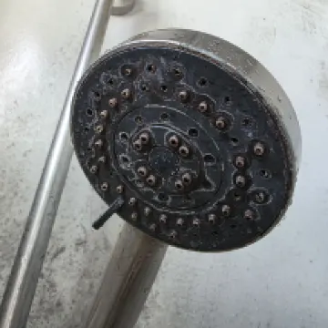 It's filthy. The showerhead and toilet are disgustingly dirty. Wastewater from the sink is discharged directly onto the balcony floor—what kind of design is this?