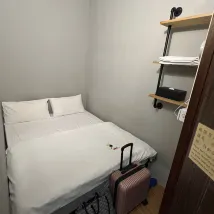 Stayed 1 night in double room. Very compact for 2 with large luggage. Could be a bit noisy as gaps in the walls. Shared bathroom spacious and with free shampoo and body wash. Shared common space had a water tank with hot and cold water and a fridge.