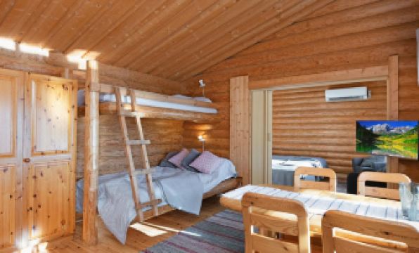 Valkjärvi 2 is a lovely small round log cabin perfect, for example, for couples seeking a peaceful getaway. Next to the cabin, there is a bridge and duckboards leading to a small island, where you'll find a campfire site. The island may occasionally have other visitors.
