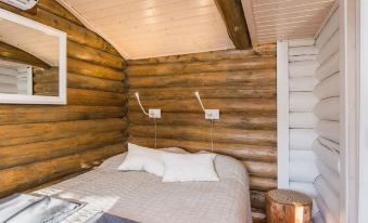 Valkjärvi 2 is a lovely small round log cabin perfect, for example, for couples seeking a peaceful getaway. Next to the cabin, there is a bridge and duckboards leading to a small island, where you'll find a campfire site. The island may occasionally have other visitors.