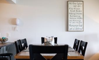 The moment you walk through the door you will be mesmerized by the gorgeous Table Rock Lake view and our island-like atmosphere. We invite you to come to spend 2 or more worry-free nights in our happy place. Our property is street level, updated, and has NO STAIRS! You will enjoy a lake view from the living area, master bedroom, and private balcony. Again, there are “NO STEPS” which make it a great unit for guests of all ages. Our kitchen is fully equipped with a stove/oven, refrigerator, microwave, and dishwasher so you can prepare all your meals, or if you choose there is a restaurant on-site. The restaurant has a chef-driven and “island style” menu and you can pair your meal with a glass of wine, craft beer, tropical cocktail, tea, or a soft drink. Sure to please is the seasonal poolside Tiki bar that has grilled food, drinks, and entertainment on the weekends. In addition, there are many other great places to eat on Indian Point or in Branson. If you are looking for a fun day on the lake the full-site marina can assist with temporary slip rental, boat rentals, equipment rental, fuel, and much more. Come stay and enjoy the beauty of being nestled between the rolling Ozark Mountains just minutes away from Silver Dollar City. Your stay at our family-friendly Rock Lane Condo and the onsite marina, tiki, and restaurant is a vacation unto itself. You will still be just minutes away from the Branson strip, but the tranquil atmosphere will make you feel far away from the hustle and bustle of the city.