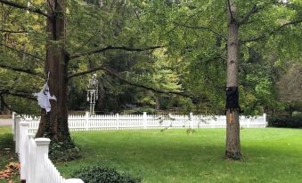 A favorite here is Outdoor space to sit and read or enjoy a drink under the trees. Corn Hole game, basketball hoop, Bocce Ball set.