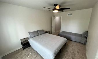 The whole group will enjoy easy access to everything from this centrally located place on South Dodge Street. 3 Bedrooms with Queen Beds, plus a 2 fold away Twin Beds to accommodate up to 8 people comfortably. Fully furnished unit with internet, washer and dryer in unit, and fully stocked kitchen for all your cooking needs. Free parking for 2 spots behind the unit, additional street parking by unit.