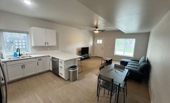 Exceptionally clean, great location, safe, off-street parking, and walkable to lots of different things. The photos are very accurate, and the furnishings are minimal. The necessities are there, but we did not find the furniture especially comfortable. The beds do have Bambo mattresses, there are plenty of linens, and check in and out was very user-friendly. We had to add a person to our stay last minute, and the host didn’t add anything to the fees (I contacted ahead of time to make sure it was OK to change the booking from 2 adults to 3), which was really nice. Very spacious as well, and the first floor bedroom and full bathroom is terrific for mobility issues.