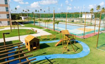The apartment also offers an indoor pool and a solarium for guests to relax in. In addition to an outdoor pool, Muro Alto Condomínio Clube also provides a children's playground.