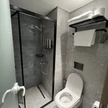 Clean and modern style room , I love the design and bathroom super 💯,, limited space for the area , lots of break choices , free fruits in room , daily housekeeping, small elevator only 2 persons can accommodate, quite far from nearby restaurants , complete toiletries 🧴