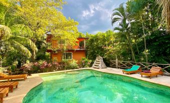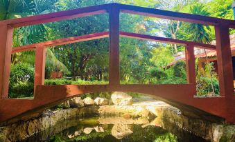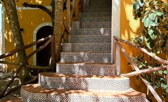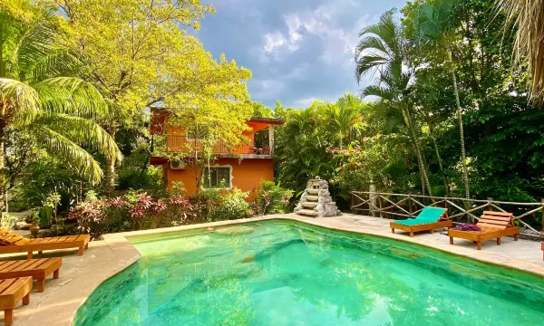 Zen-like walking paths with cenote swimming pool and lots of room options. Wonderful stay in a charming town!