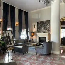 2. The decoration style is European and classical, with many hanging paintings and an old-fashioned sewing machine from China.