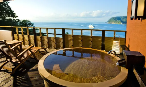 First picture: This elderly Japanese gentleman kneeling on the ground—look closely, he wouldn't give me the room type I booked. I booked a tatami room with a balcony and private onsen.