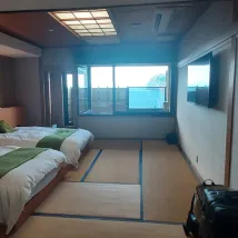 Although the location is a bit far, it is cost-effective, with traditional Japanese hot springs, each room has its own private bath, and a sea view. The room is clean, tidy and comfortable. I am very satisfied!