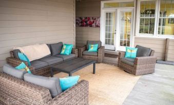 The house is large and spacious, with beautiful views of the river. It worked well for our family to gather during my daughter’s wedding. But it has some quirks that affected our visit. For example, the master bedroom downstairs does not have a door, which was very uncomfortable when undressing. An inch-tall defect in the bedroom floor led to constant stumbling, but thankfully no falls. The master bathroom can’t be completely locked, another uncomfortable situation when showering or using the toilet, since it adjoins another bedroom. The main front door can only be locked from the inside, so the last person leaving must use the other front door which is locked with a key. Since we weren’t sure who would return first, the key was hidden outside – we felt forced into this low security situation and hoped the neighbors didn’t see – why not provide guests with the code to the electronic door lock? The stove didn’t work properly, and neither did the icemaker. Lastly, the ad shows an idyllic picture with 5 Adirondack chairs by the river, but only 2 quite dirty chairs were provided. I hate to nitpick such a beautiful house, but these things negatively affected our stay and should be addressed for this wonderful property.