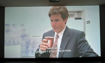 *Theater room with canvased 200” black screen.
