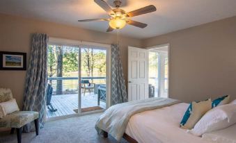 Jackson Lake is a nearly 5,000 acre lake with 135 miles of shoreline. Our home is in between two "no-wake" zones so it is relatively quiet. It's near Bear Creek Marina where you can launch your own boat. In the summer, the marina offers food, drinks and music on the patio on the weekend.