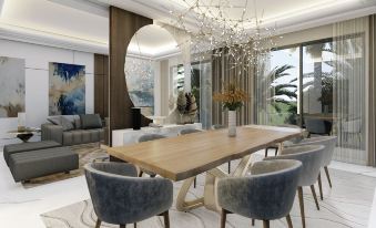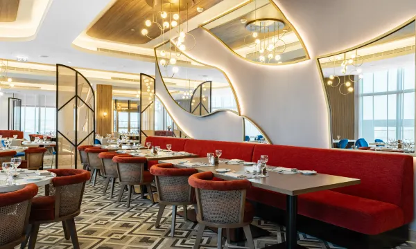 The hotel has 706 modern guest rooms with premium amenities. Guests can enjoy a variety of dining options, including Arabic, Turkish, and Moroccan cuisine.
