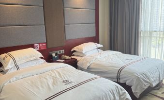 首先地理位置比較不錯,服務人員態度不錯。其次是酒店設施整體些許老舊,酒店衞生情況不太可以,因為床單枕頭上灰塵特別多,圖片拍了一張,衞生間地面看着老舊污漬明顯,門鎖不能反鎖是壞的,枕頭兩個都是高枕,按道理都是一高一低的供人選擇,對習慣低枕的人很不友好。最後是酒店平常早餐時間是七點半,入住的時候當晚為了很多人考試所以把早餐時間提前至7點,這點比較人性化,但是早餐類型不多、確實不好吃,饅頭類特別幹也是沒吃過吃到這麼乾的,而且也是冷的,玉米看着沒水分乾巴的不新鮮就沒吃,炒飯炒麪味道還行。還有提醒的是,這個200價位的酒店房間裏的配了兩瓶礦泉水,服務人員説是付費的。平台寫的是豪華雙床,但實際入住的時候衹是普通標間。