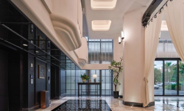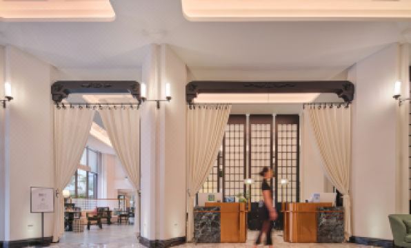 The building and corridors look fancy with high ceilings, though some parts of the lobby and second floor don't match this standard.