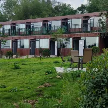In front of the rooms, on a big green patch, there were chairs and tables to take in the neighborhood overgrowth.