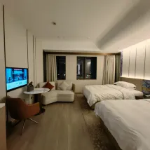 The stay was fantastic! The front desk was welcoming and patient. CC proactively upgraded my room upon check-in. Seeing that there were elderly people in our group, they offered to provide non-slip slippers and loan us elderly-friendly tools, which was highly appreciated. The night manager, Xiao C, was also very welcoming, repeatedly apologizing for the parking inconvenience and offering nuts. The room was also very clean. Every detail was thoughtful and thoughtful. I would definitely choose this hotel again!