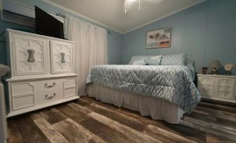 My home has an open floor plan that has been recently redecorated. There is a master suite with a king bed and garden tub. The second bedroom has a full bed and the third bedroom has twin beds. There is an air mattress and a large couch if extra sleeping areas are needed. A washer and dryer are provided.