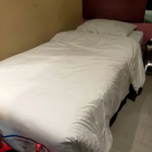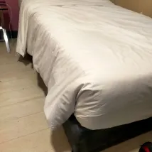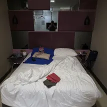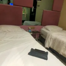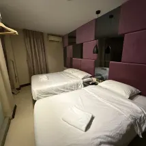 The room is quite dark and damp, and the floor isnโt very clean โ indoor slippers should really be provided. Some parts of the flooring are damaged, which makes the place feel uncomfortable. Although the bed itself looks at least clean, when I first came out of the lift on the first day, I saw a pile of used bed sheets and towels left on the floor until the next morning โ it really gave me an unpleasant impression.