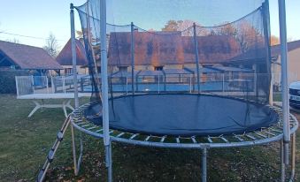 Land of 7000 M2 with games (table football, ping-pong table, badminton, swings, darts, pétanque court, trampoline, basketball hoop, air hockey, etc.)