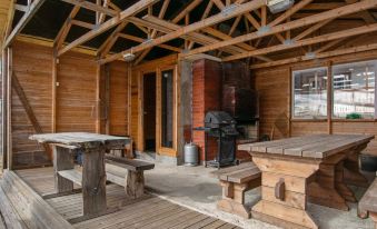 Wood heated hot tub rentable from the owner. Playhouse, swings for children. Household water to the cottage comes from the lake. Customers must bring drinking water.