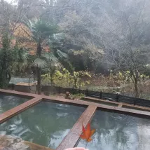 The room was spacious and comfortable. The Japanese-style room was relaxing. The bath was also clean and relaxing. The open-air bath along the mountain stream requires you to descend quite a few steps along the slope, then climb back up after bathing, making it a good workout.
