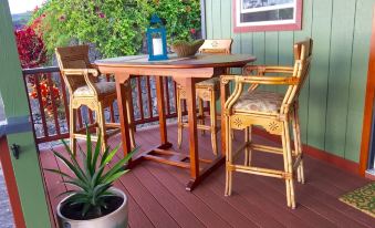 Our custom built studio cottage is about 500 sq. feet with a roomy wide lanai, and special bistro high seating to enjoy the fabulous ocean view. MUST see to appreciate!