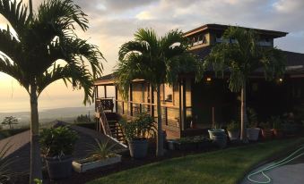 The cool elevation of our cottage is 1400 ft. with a beautiful view of the coastline over Honokohau Harbor. The sunsets we get to enjoy are incredible! The coqui frogs will sing to you in the early eve but quiet down during the middle of the night. Some call them them "night singing birds".